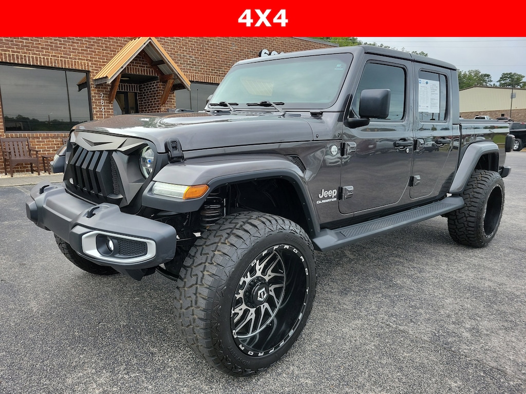 Clean Carfax, Locally Owned, Lifted, Leather, Remote Start, Backup Camera, 4x4, 22" TIS Wheels and Tires, TRANSMISSION: 8-SPEED AUTOMATIC (850RE) -inc: Tip Start, Transmission Skid Plate, Selec-Speed Control, TRAILER TOW PACKAGE -inc: Trailer Hitch Zoom, Class IV Hitch Receiver, Heavy Duty Engine Cooling, 240 Amp Alternator, SAFETY GROUP -inc: ParkSense Rear Park Assist System, Blind Spot & Cross Path Detection, REMOTE START SYSTEM, REMOTE PROXIMITY KEYLESS ENTRY, RADIO: UCONNECT 4C NAV W/8.4" DISPLAY, LED LIGHTING GROUP -inc: Daytime Running Lamps LED Accents, LED Park Turn Lamps, Front LED Fog Lamps, LED Reflector Headlamps, LED Taillamps, GRANITE CRYSTAL METALLIC CLEARCOAT, ENGINE: 3.6L V6 24V VVT UPG I W/ESS (STD), COLD WEATHER GROUP -inc: Heated Steering Wheel, Heated Front Seats. This Jeep Gladiator has a dependable Regular Unleaded V-6 3.6 L/220 engine powering this Automatic transmission.